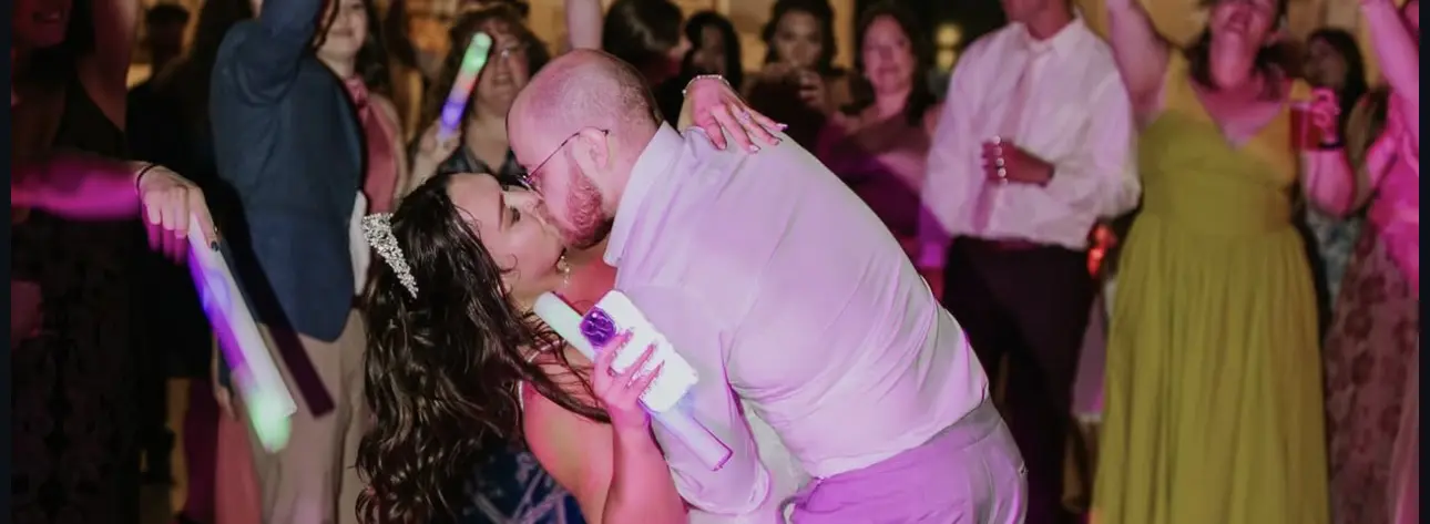 Nothing sets the mood better than lighting. Will Nye the DJ Guy transforms wedding venues from standard to stunning with specialty uplighting. Couples can create the look they want with customizable uplighting. For the dance floor, wedding couples can choose the eloquence and fairytale qualities of Dancing Under the Stars or the energy and flashiness of 360-degree Tube Lighting. A Custom Monogram and Audio Guestbook add even more excitement to your wedding day.